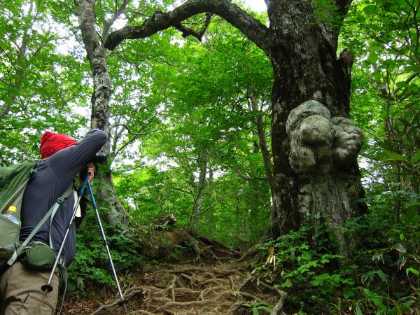 登山口から先はとてもきれいなブナ林の中を歩きます。