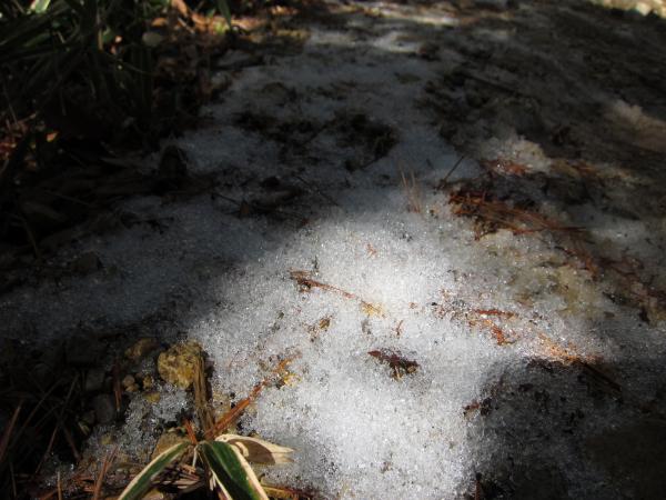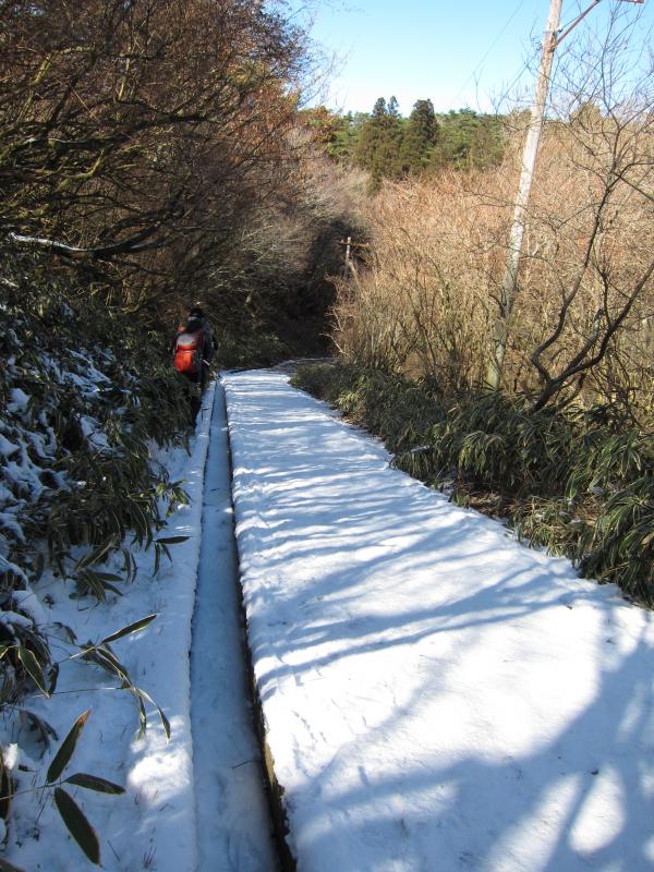 雨ヶ峠より標高が上がると雪も残っていて、日陰やよく踏み固められた箇所では滑りやすくなっているので注意が必要です。