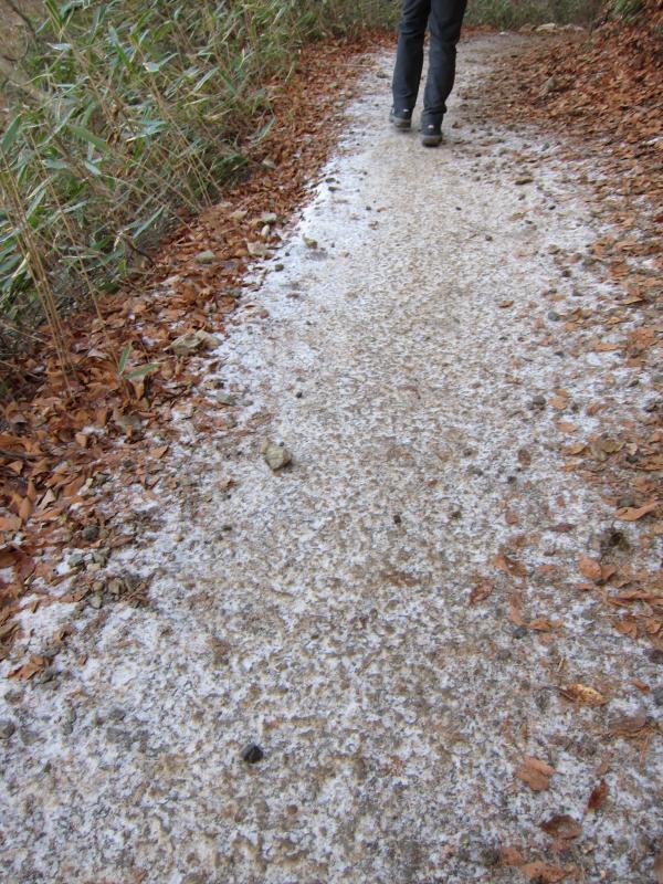 - 早朝に降りた霜が解けて、登山道の所々が泥状になっています。