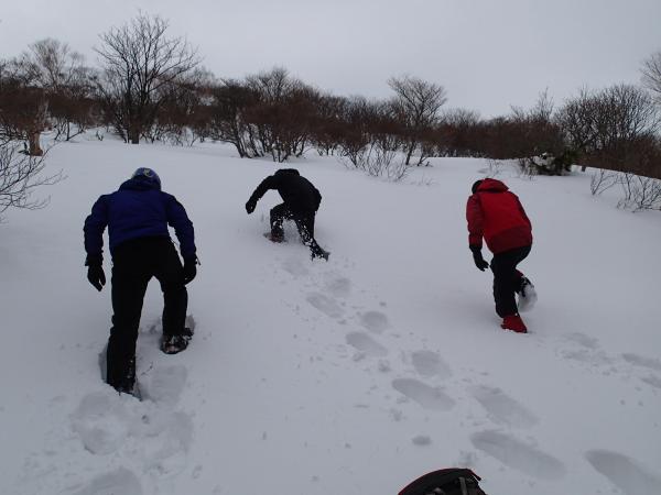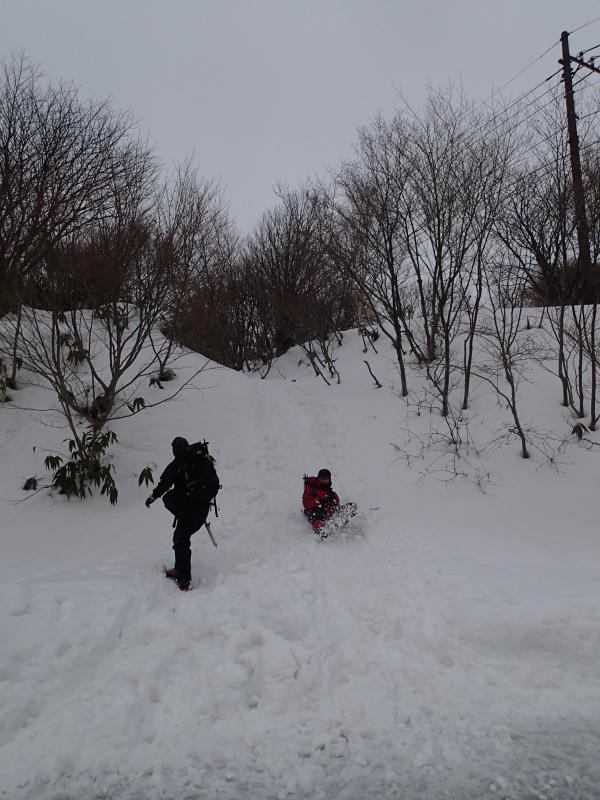 サクッと登って、時間があったので峠の茶屋の後ろの斜面でスノーシュー、ワカン、ソリを使って遊びました(^^)道具は使ってこそその価値がわかりますね♫