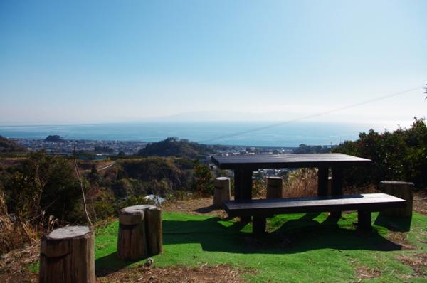 由比駅からの登りは7割が車道沿いを歩きますが、道中はみかんなどの無人販売や駿河湾が見渡せる簡易休憩所、浜石野外センターの展望台がありのんびりと歩けます。