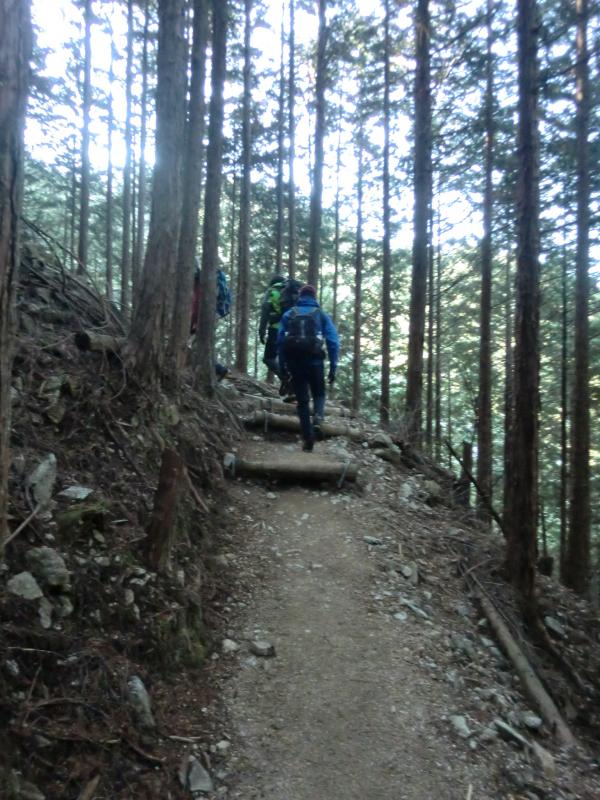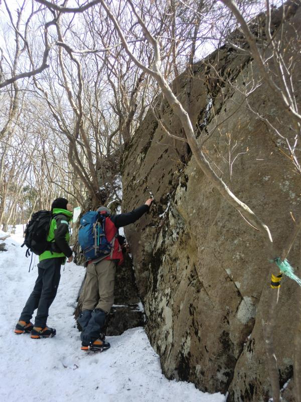 - 気温が前日より上昇した為、高見杉までまったく雪なし。杉谷平野分岐から12本アイゼン着用。