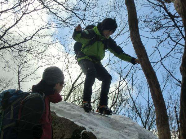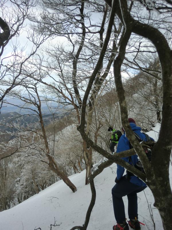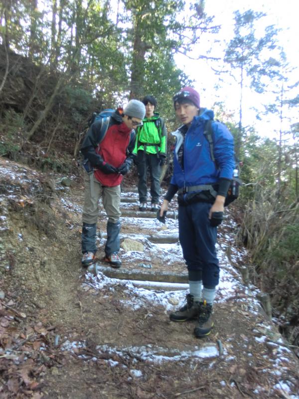 登山口から高見杉まで、晩秋のような気温で登っているととても暑かったです。。高見杉あたりから少し雪はありましたがアイゼンを付けたのは杉谷平野分岐からでした。傾斜面と道がかなり凍結してたので12本アイゼンが役にたちました。避難小屋にが二か所あり、休憩させて頂けて有難かったのですが、ごみが目立ち気になりました。雪山では、山頂で料理をしたり温かいものをみんなで共有するのも楽しみのひとつ。その分ゴミも出ます。ナイロン袋は必須ですが、ジップがあるナイロン袋は液漏れしないため役立ちます。山でゴミはださないことを広めたいと思う今回の山行でした。