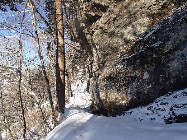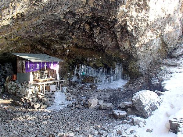 - 笙の窟までは日陰以外は雪の量はさほど多くなく、比較的締まっていました。