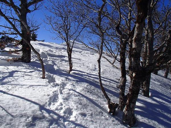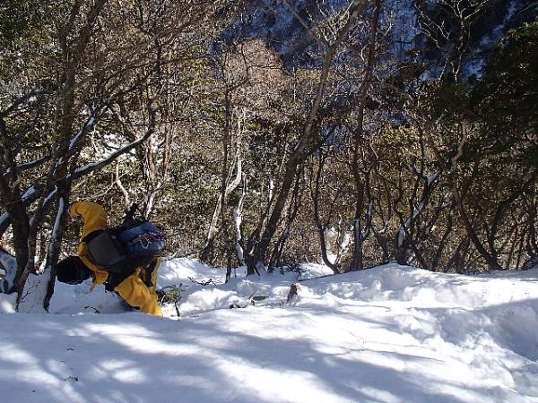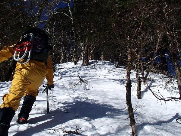 日本岳のコルへはひざ上のラッセルをしながら上がってゆきました。