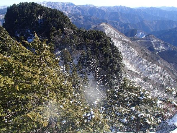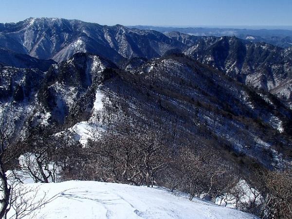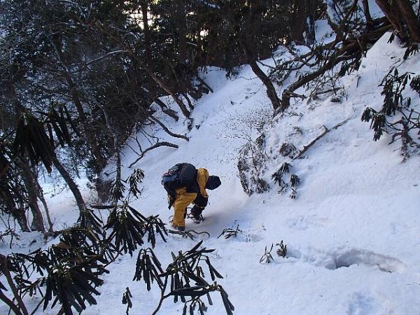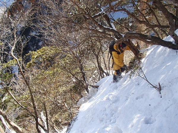 大普賢岳に近づくごとに急斜面での行動が多くなり、滑落したら谷底まで落ちそうな箇所の行動は緊張と慎重な行動を強いられました。ピッケルやアイゼンをしっかり確実に使える事が重要でした。