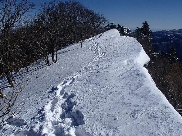 崖の上の急斜面のトラバースや急斜面の上り下り、トレースが消えている場合もありますのでルートを自分で見つけ出す事も必要。