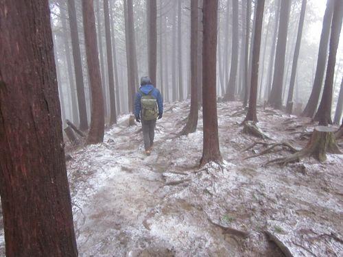 - 前日からの雨や暖かかったのもあり、山頂直前まで雪はほとんどありませんでした。