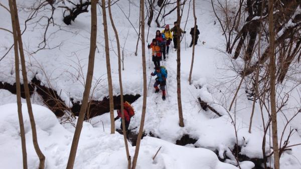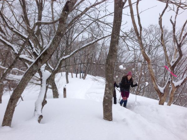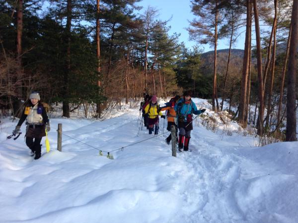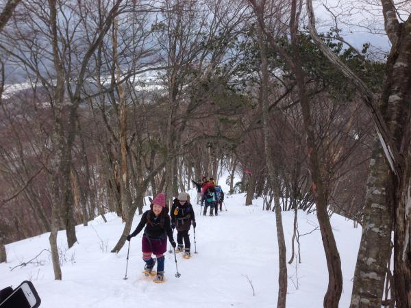 総勢13名での賑やかな登山でした。たっぷりの雪でスノーシューで歩くにはもってこいです。