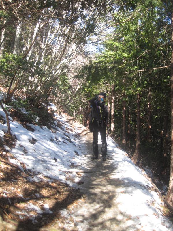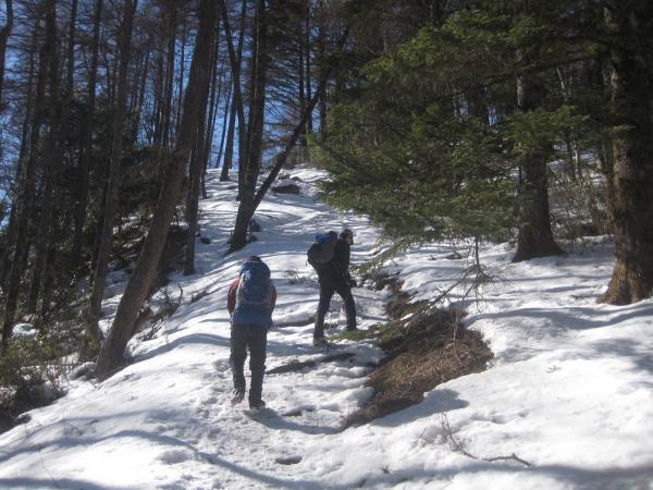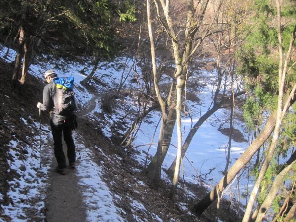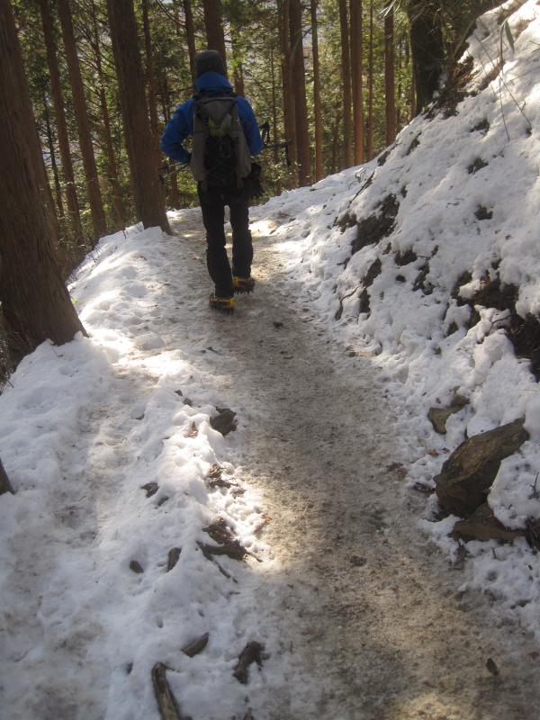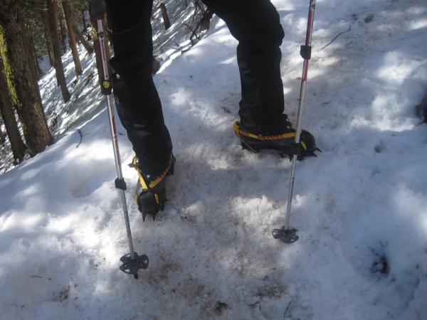 下山時はまだ気温が低く、アイスバーンが多かった。爪が良く効き歩きやすい。