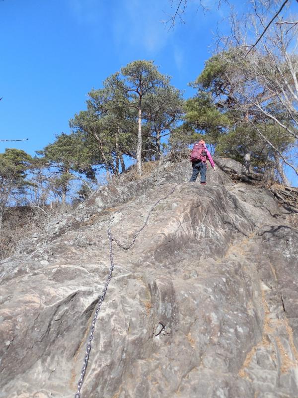 いったん降りて、小天狗の下を巻いて不動岩へ。鎖の設置された岩を登っていきますが、結構登りにくい。ここも展望最高。