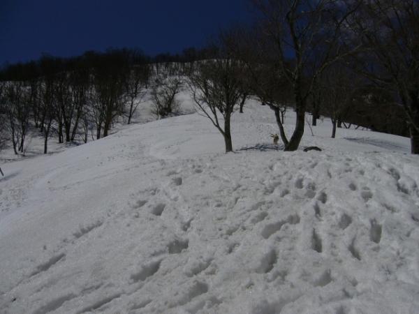 - 登山口付近は1mを越える積雪。(シャバ雪)