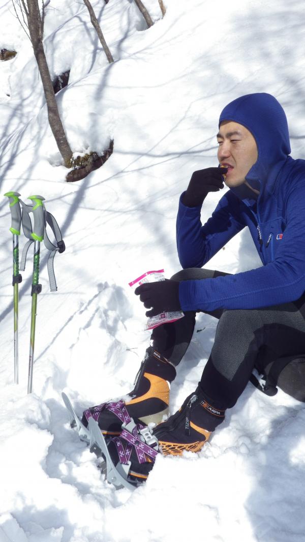 下山はこのままスノーシューは脱いで半分シリセードで下山しました。