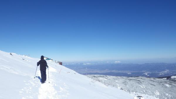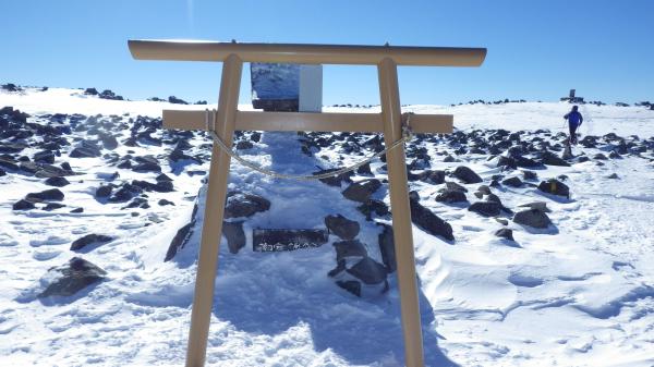 頂上付近に荷物をデポしてスノーシューも脱いで身軽な状態でアタック!