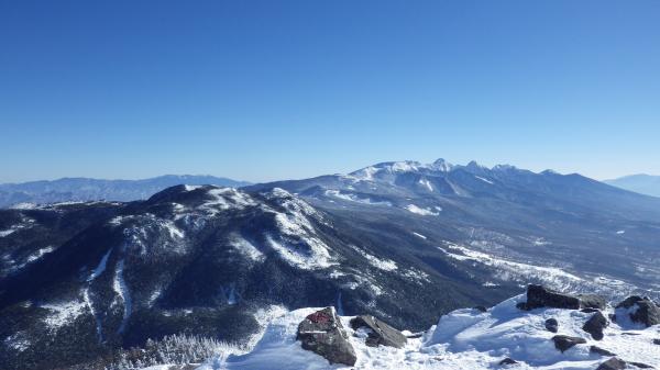 山頂からは360度ぐるりと見渡せて、八ヶ岳連邦はもちろん、アルプスの峰々もずーっと見渡せました!