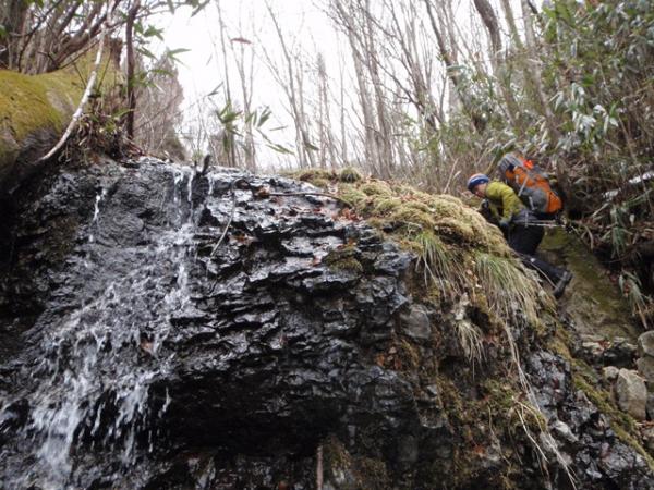 風穴コースは、岩に水が染み出ているので、ツララなどが出来ているかが楽しみでしたが、予想通り大きなツララ、ルートもしっかり雪が付いていて冬の山を堪能できました。風穴経由コースは、10~12本爪アイゼン、ピッケルの装備が必要です。雪の状況に応じては、補助ロープも必要な時もあります。