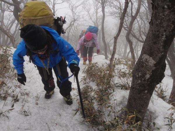 アイゼンは必須です。笹が背丈以上あって、枝が飛び出ているところがありますので、サングラスなど着用し目を守ることをお勧めします。