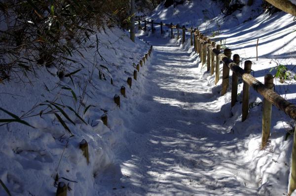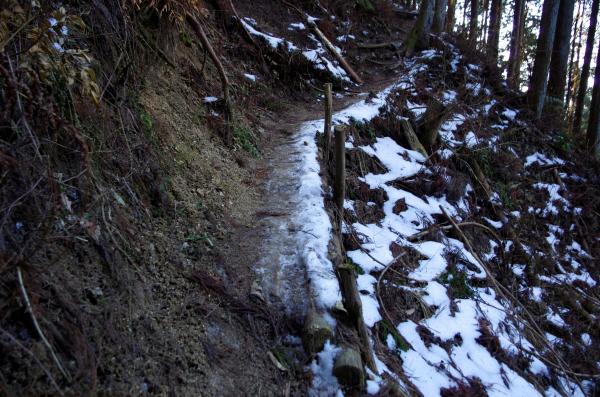 特に登山者の多い千早本道は踏み固められて滑りやすいので注意してください。