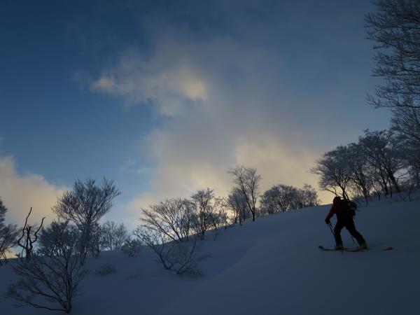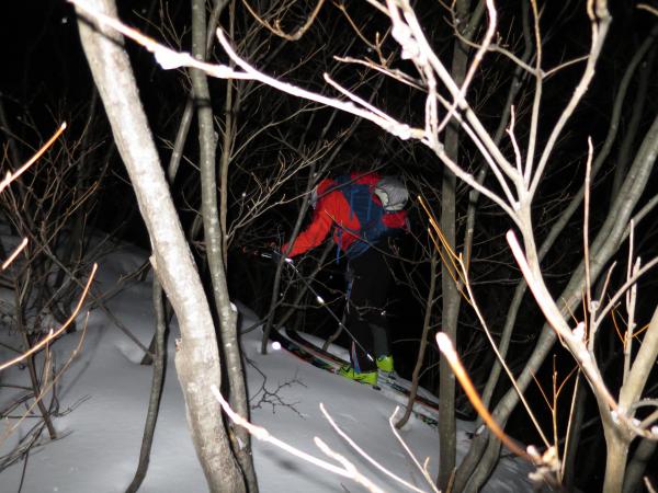 そこから下は藪で難儀して、一部でつぼ足にもなったが、途中からまたスキーを履いて下山。