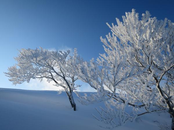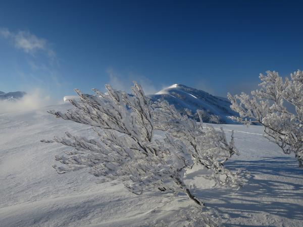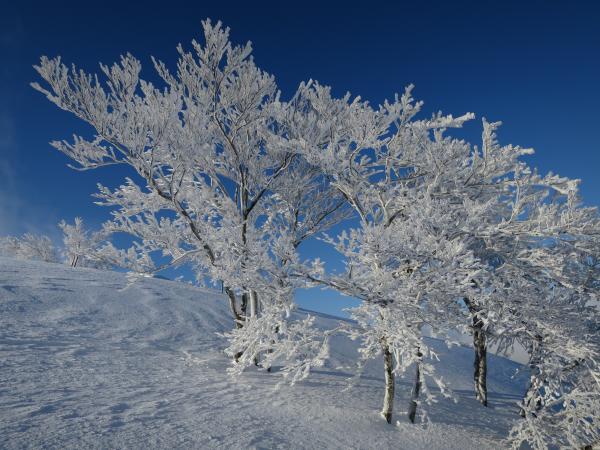 標高900mを過ぎた辺りからは樹氷も姿を現してくれ、、更に青空の面積も増えだしてきてテンションも急上昇。