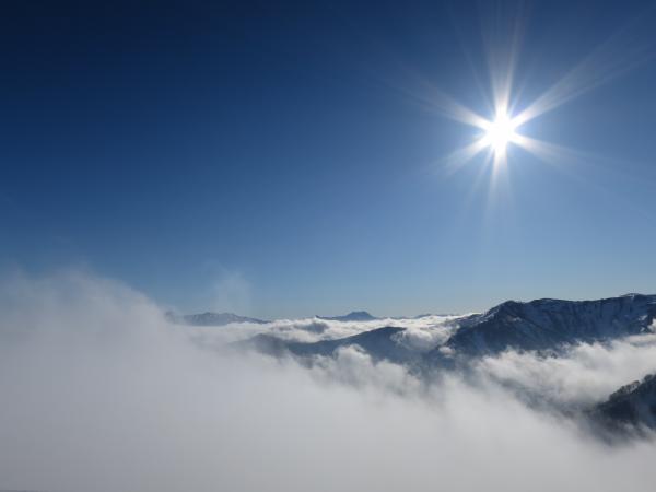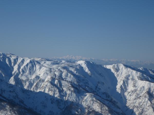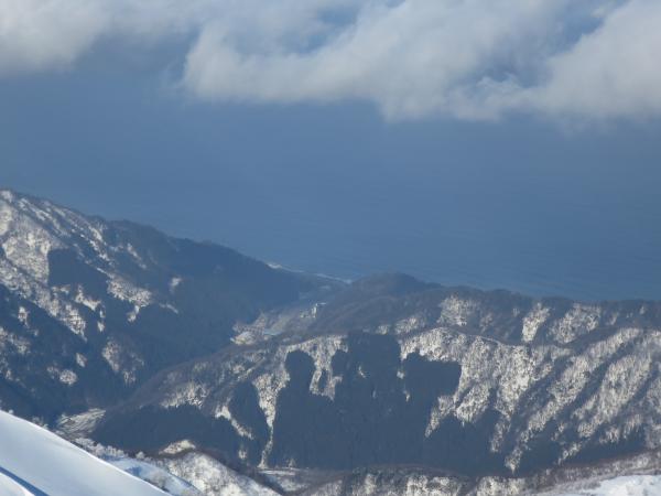 日本海、剱岳、白山、朝日岳、頸城山塊が綺麗に見えていた。