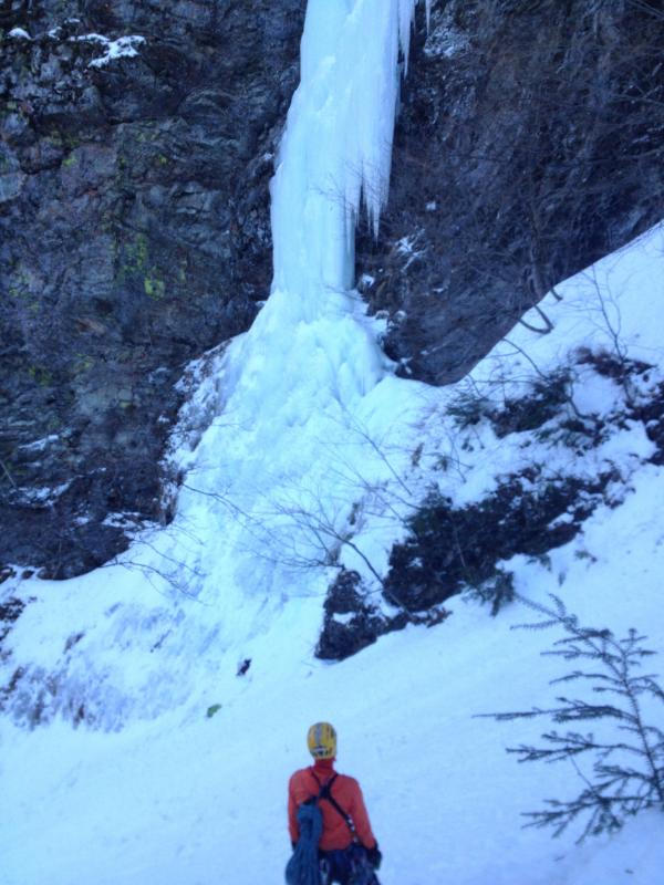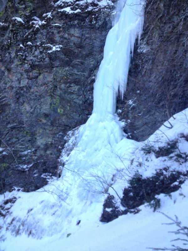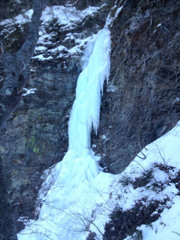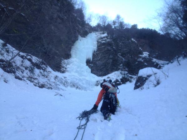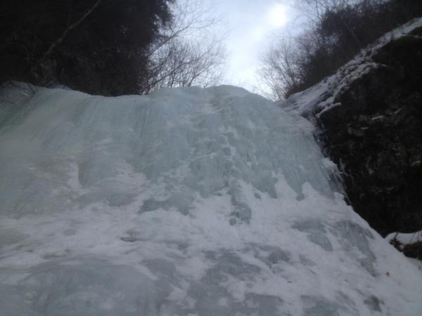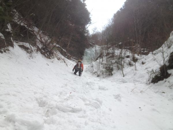 地形図を頼りに沢を詰めていくと、目の前に氷瀑が現れます。