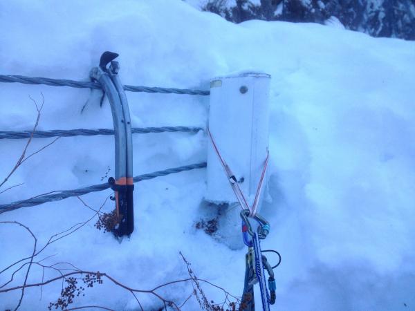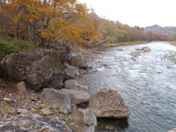 終了点からは南アルプス林道を歌宿洞門の方へ40m程度歩いた場所から、ガードレールを越えて適当に下降します。