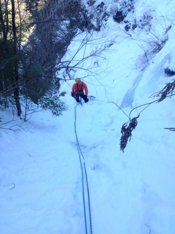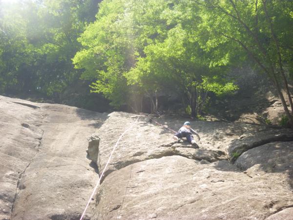 50mロープなら2ピッチ、60mロープなら1ピッチで林道に抜けれるでしょう。
