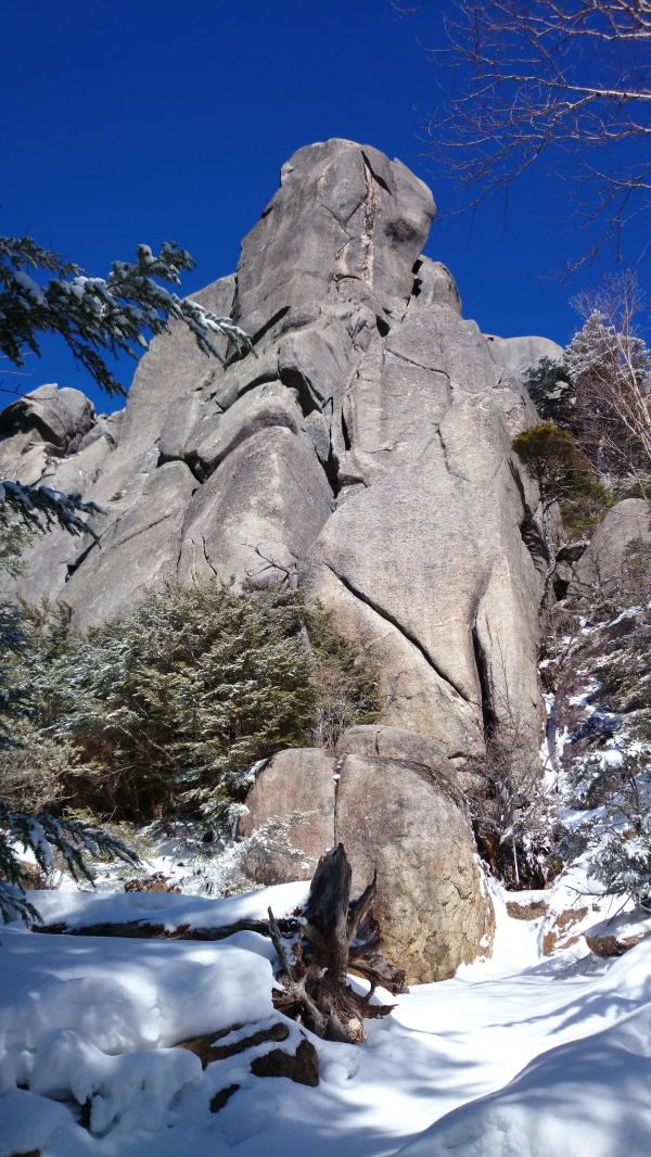 雪に染まった木々や桃岩、途中開けた空に切り立って出てくる大ヤスリ岩。夏とは違った景色に魅了された。