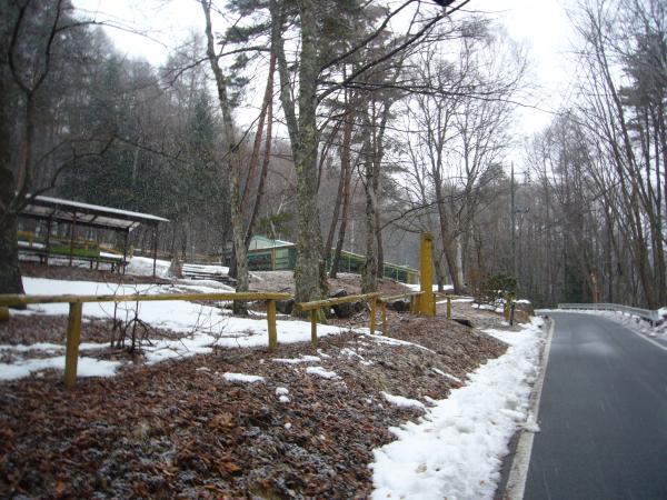 下りでは瑞牆山荘までアイゼンはつけておいた方がいい。増富温泉バス停まではチェーンスパイクがあれば、コケる心配はない。(一部凍結箇所あり)