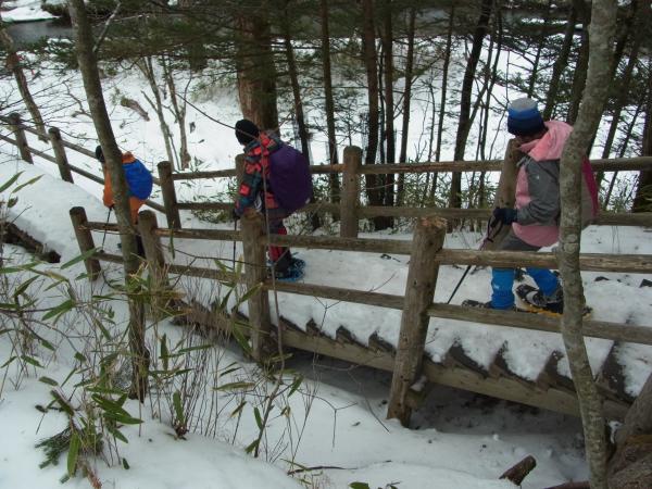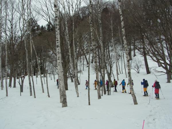 スノーシューが初めての方がたくさんいらっしゃいましたが、勾配も少ない遊歩道のコースの為、