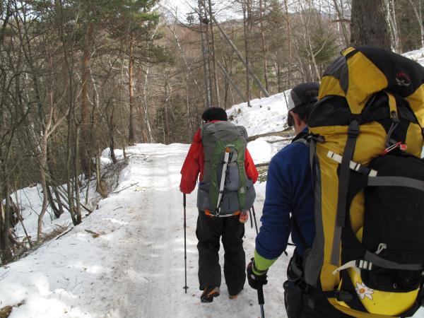 初日は気温が高く、赤岳鉱泉までのルート北沢を歩いてると汗ばむほどでした。