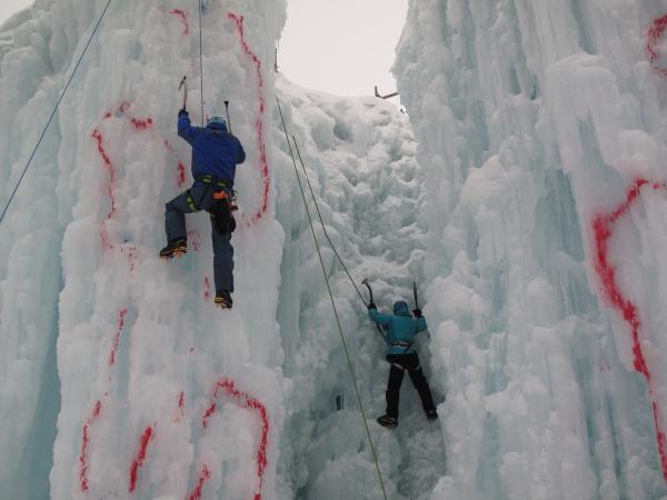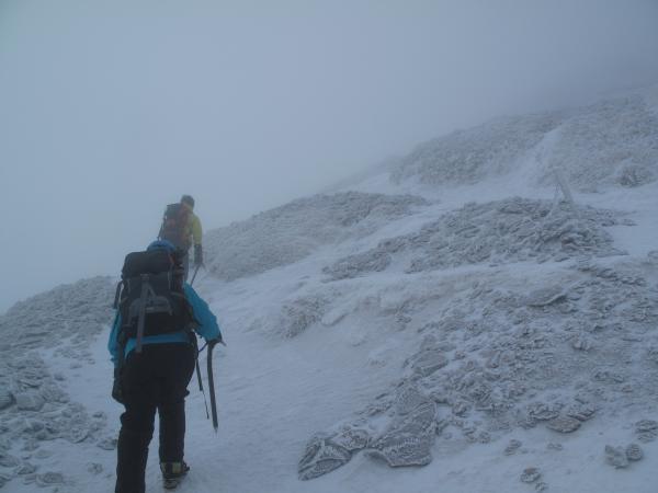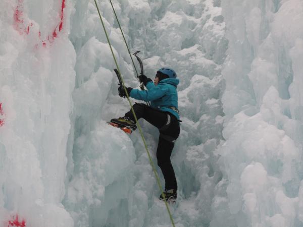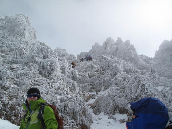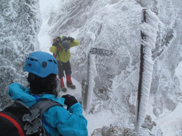 持ちなれないアイスアックスを振り、前爪を刺しながら登りましたが、一本で腕がパンパンに…。まだまだ修行が必要です。