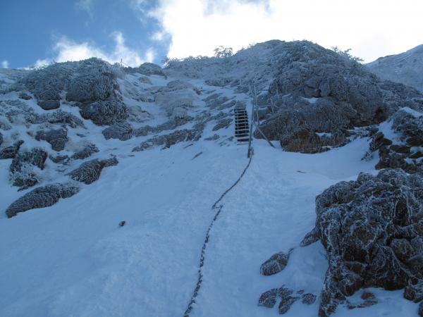 赤岳へはピッケル、10本以上のアイゼンが必要です。地蔵尾根、文三郎尾根はハシゴや岩場、トラバースがあるので注意が必要です。