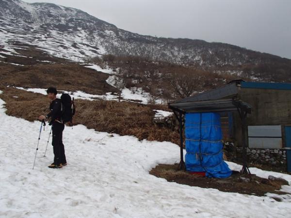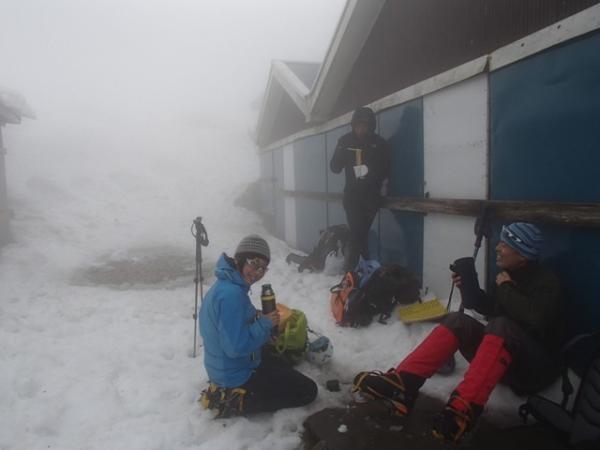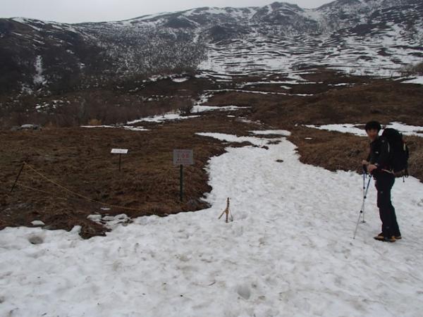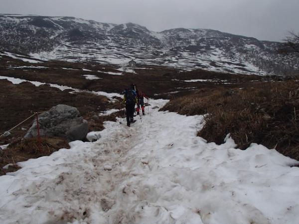 - 春の様に暖かい日で、6合目と7合目の間から積雪がしっかりしてきました。
