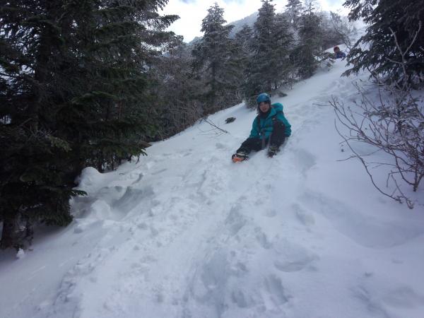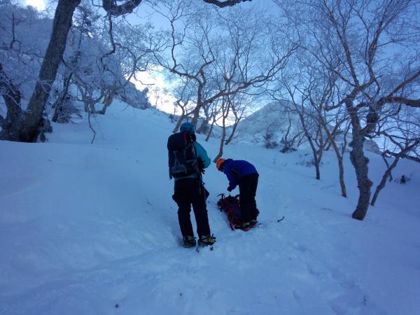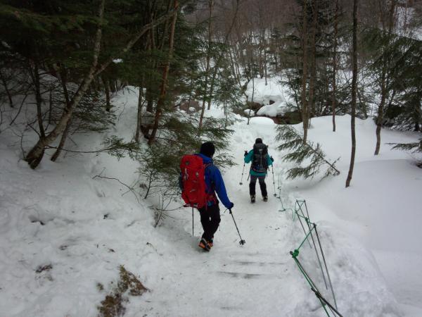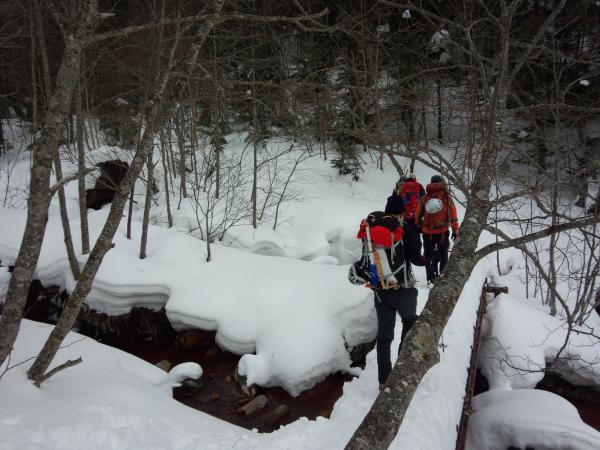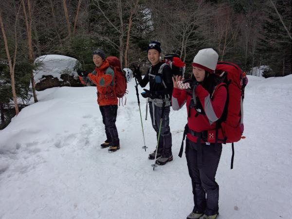 - 赤岳鉱泉までの登山道は凍ってツルツルです。