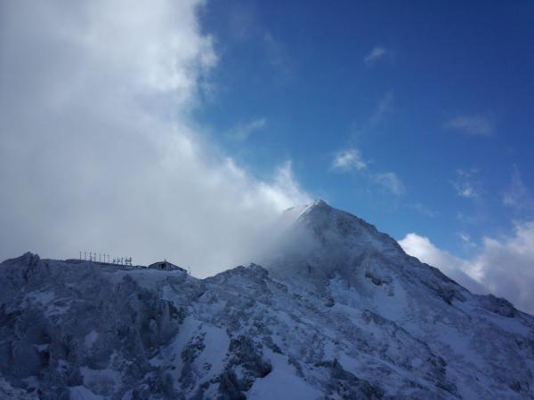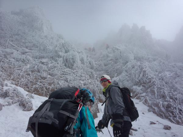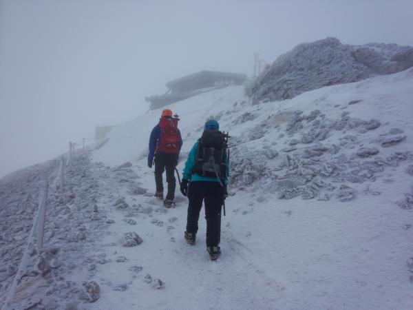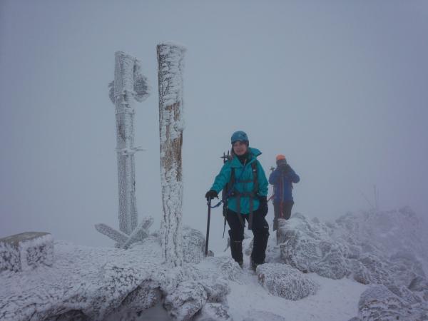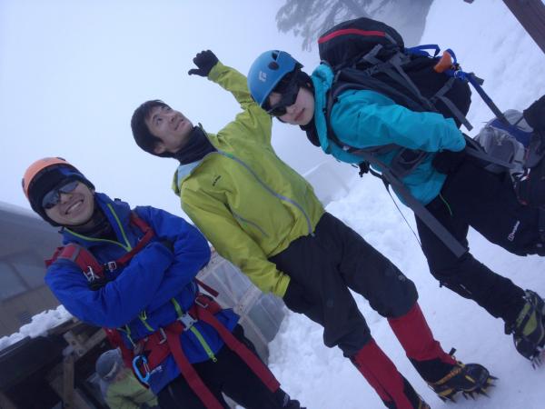 稜線にあがってから赤岳まではガスに包まれましたが、いい雰囲気の中登頂することができました。