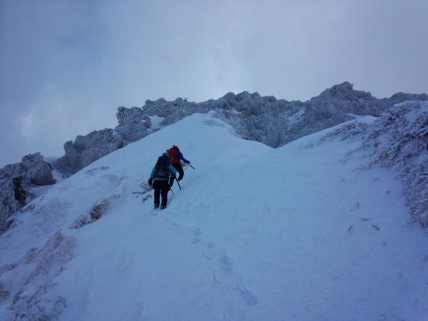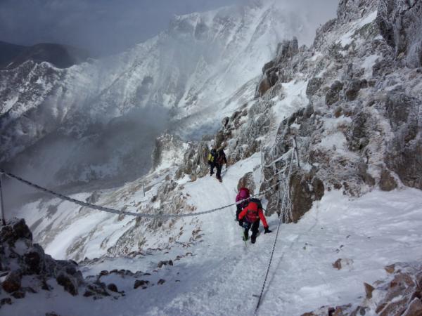地蔵尾根から赤岳への登りは雪がなく夏道がでています。