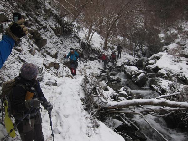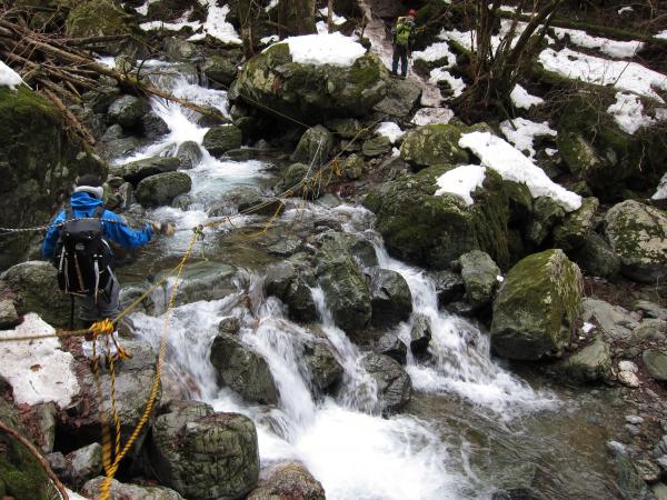 コース上で沢を4~5回渉りますので慎重に歩いてください。
