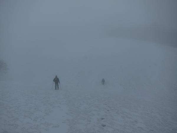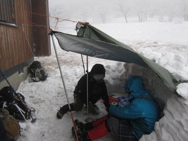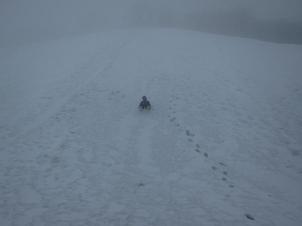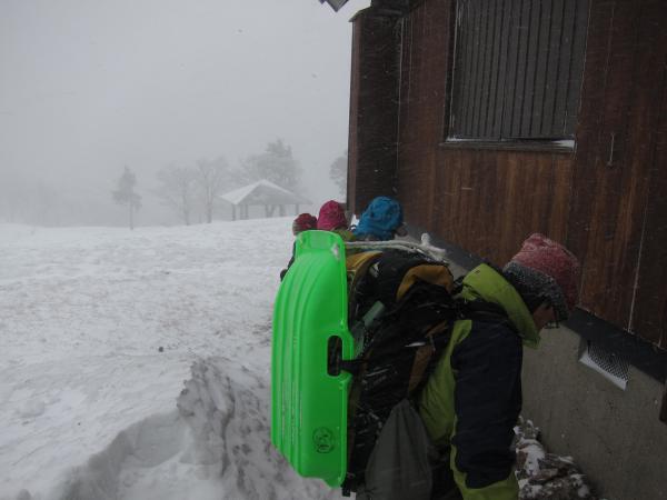 山頂付近は風が強く、景色も良くありませんでしたが、暖かいものを食べ、各々がスノーシューやそりで遊び楽しんできました。