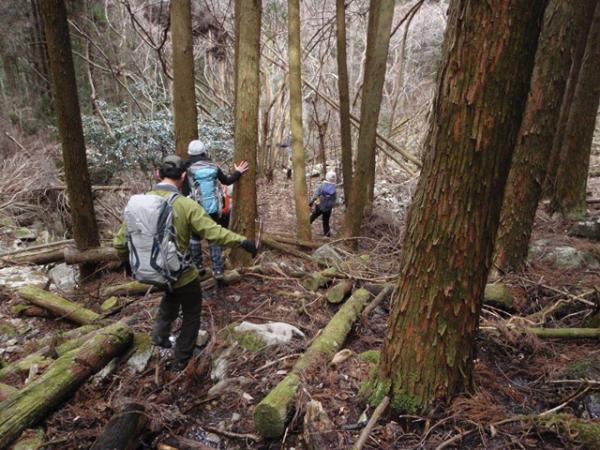 越敷岳からの下山道は、とても荒れていて、歩きにくいです。ハサミ岩からさらに下るところから、かなり荒れており、ルートが分かりずらいので、注意が必要です。