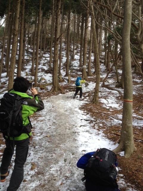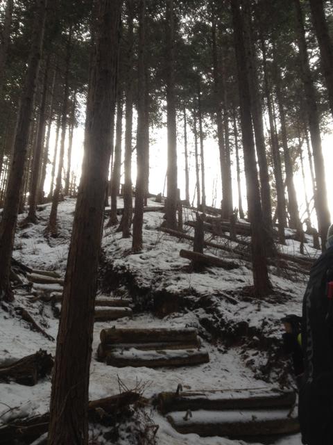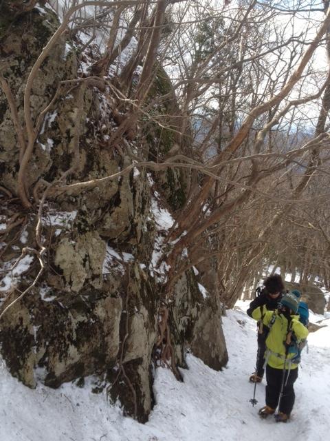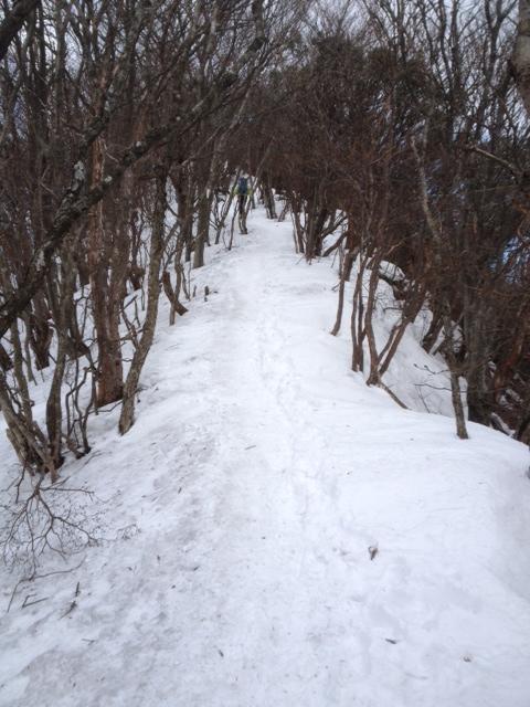- 最初は全然雪はありませんでしたが、高見杉を越えてから30分程歩くとアイゼンが必要になりました。