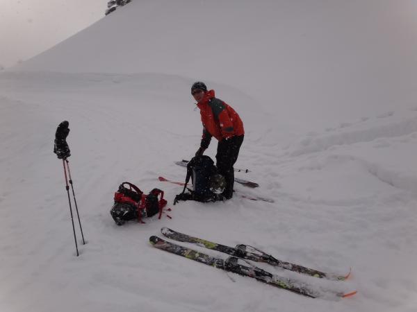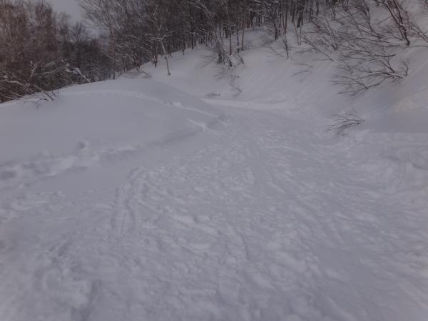 登り始めて40分ほどの所で突然トレースが消える。我々より先行組がここで引き返した模様。