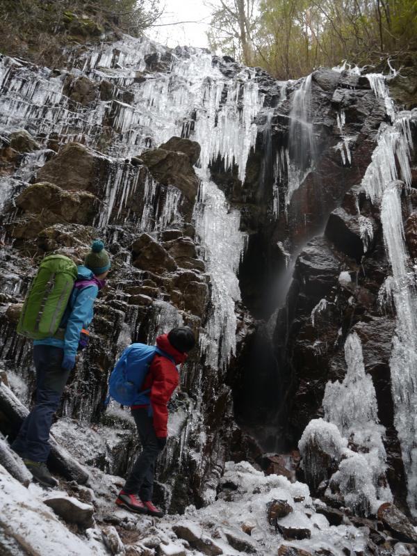 前日の冷え込みもあり、氷瀑も見ることができ、にぎやかな山行になりました。