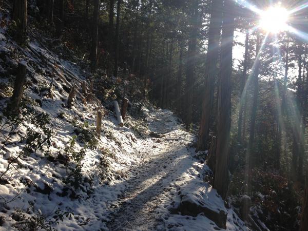観音峰までは雪も少なく、凍結も見られなかったのでつぼ足で、