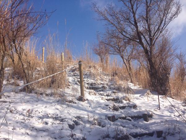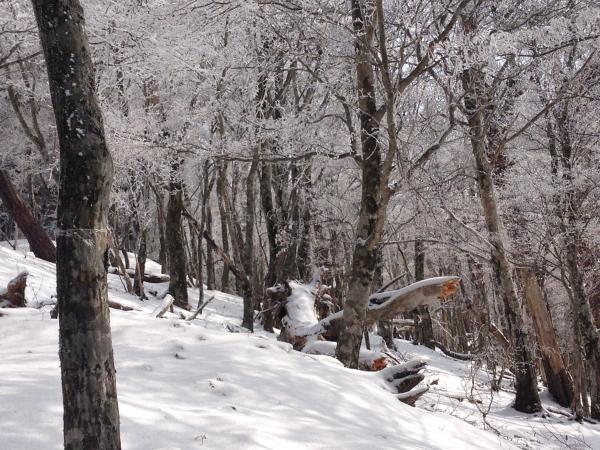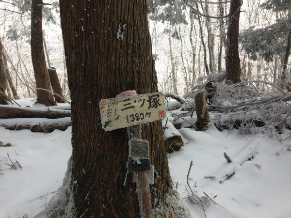 観音峰から三ツ塚より雪も増え、ツルんときたのでアイゼンに