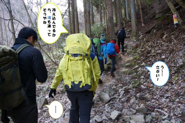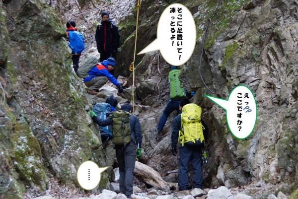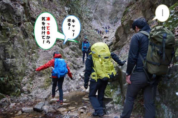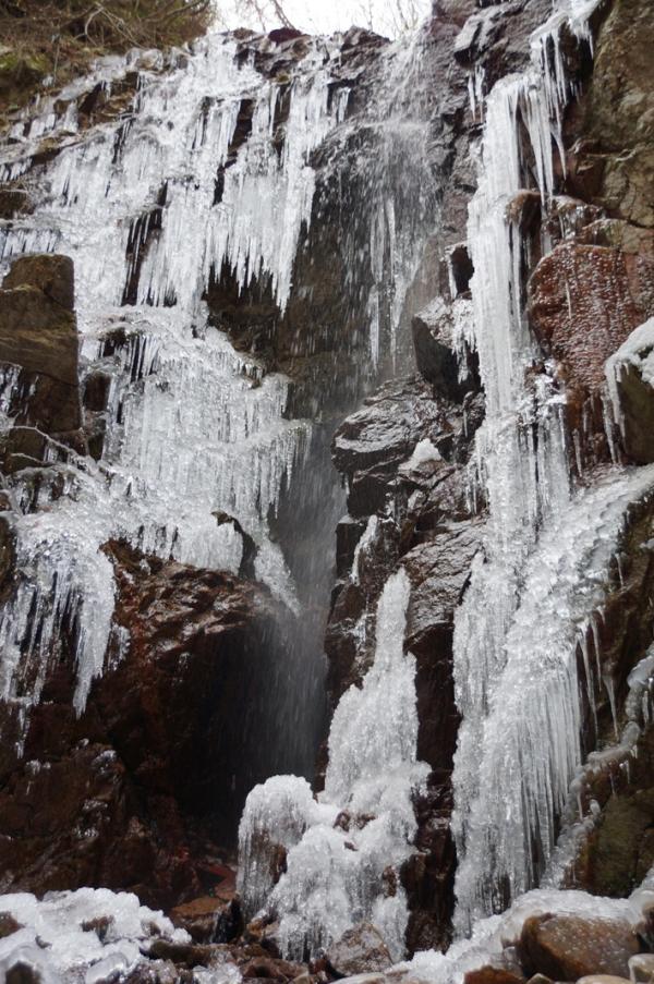 - 七曲滝の辺りは凍っています。アイゼンが必須です。