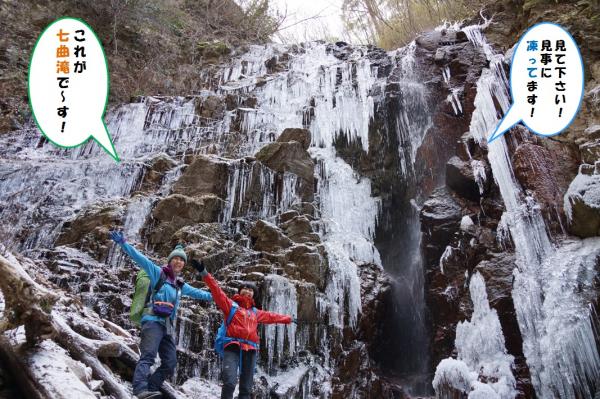 予報では微妙かと思われましたが、数日前から冷え込んだため七曲滝は見事な氷瀑となっていました。