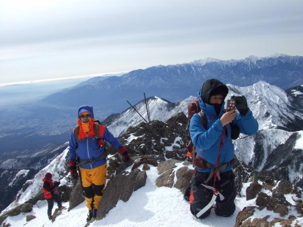かなり雪は少なく、岩がむき出しになっていたり、はしご、手すりは雪に埋まっていませんでした。