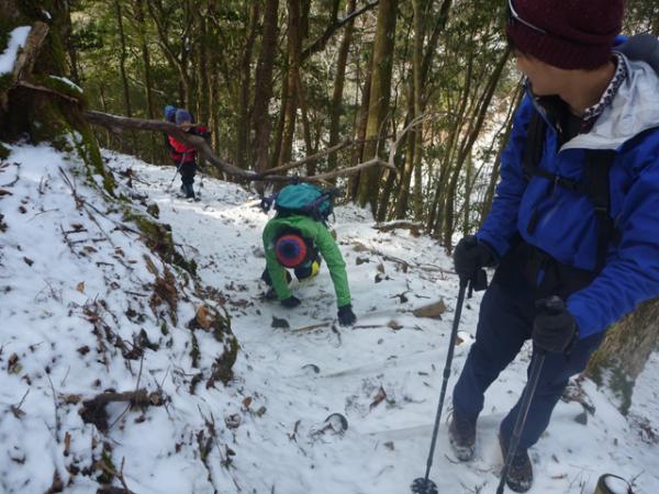 急斜面をトラバースするポイントも何カ所もあり低い山とはいえスリル満点でした。